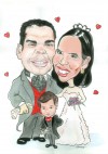 Un mejorable recuerdo para los novios, una imágen en caricatura junto a las firmas de los invitados. Imprimible en partes matrimoniales, stiker para sellar partes, azares.