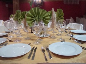 • Mantelería y vajilla completa, mesas, sillas, fundas y mesones, mesas de apoyo.