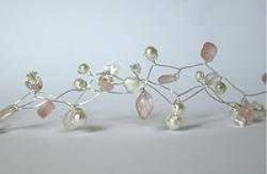 tocados de novias , collares , aros y otros accesorios para ese día único .Los materiales que uso son plata 950 , oro 14k , crin , cristales checos y swarovki , perlas y piedras naturales . precios varían entre $ 25.000 y $ 50.000 .